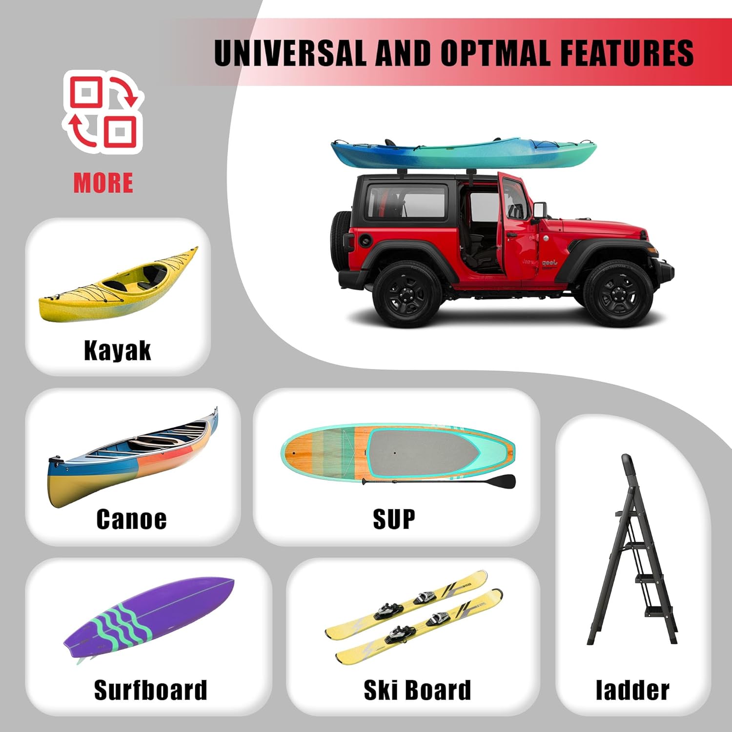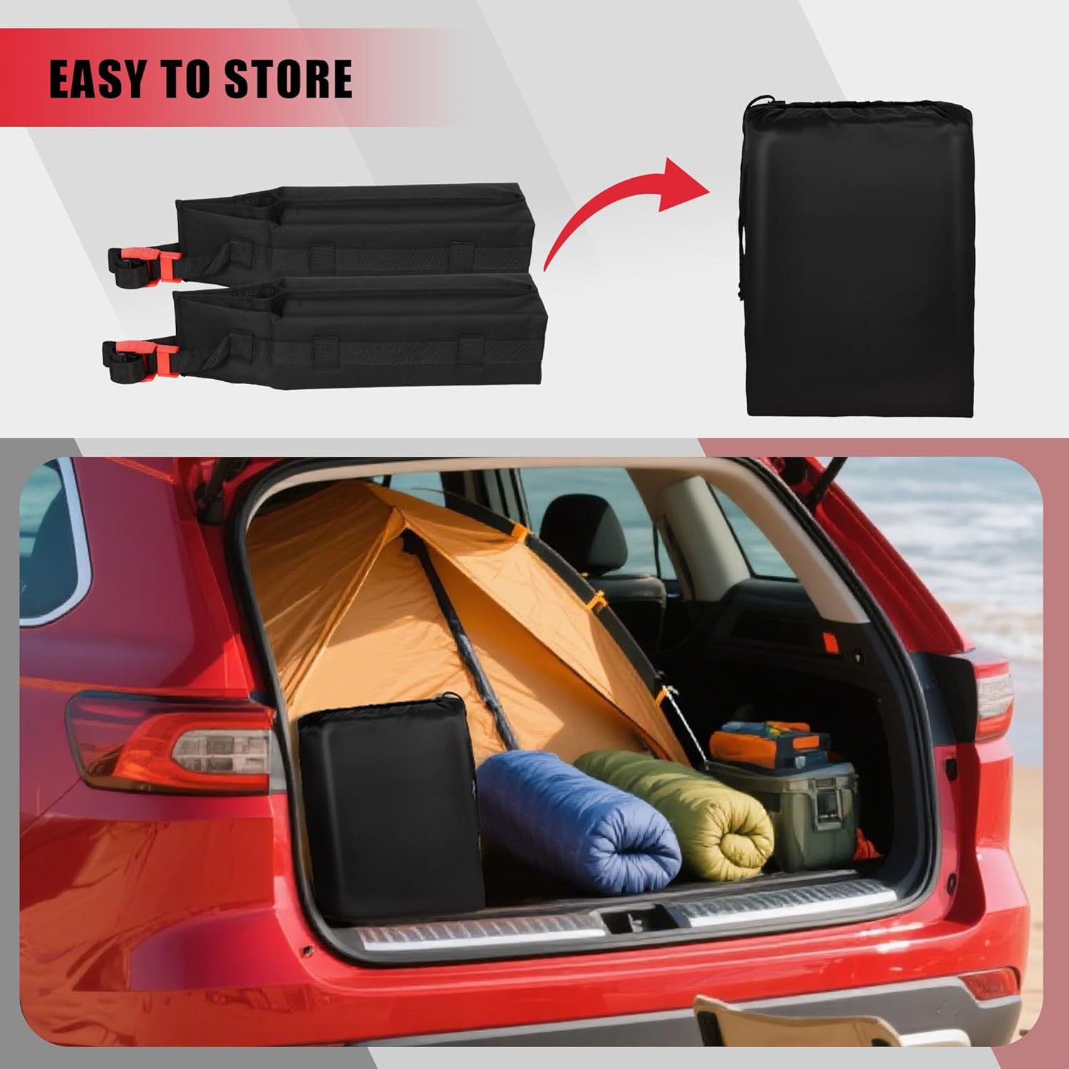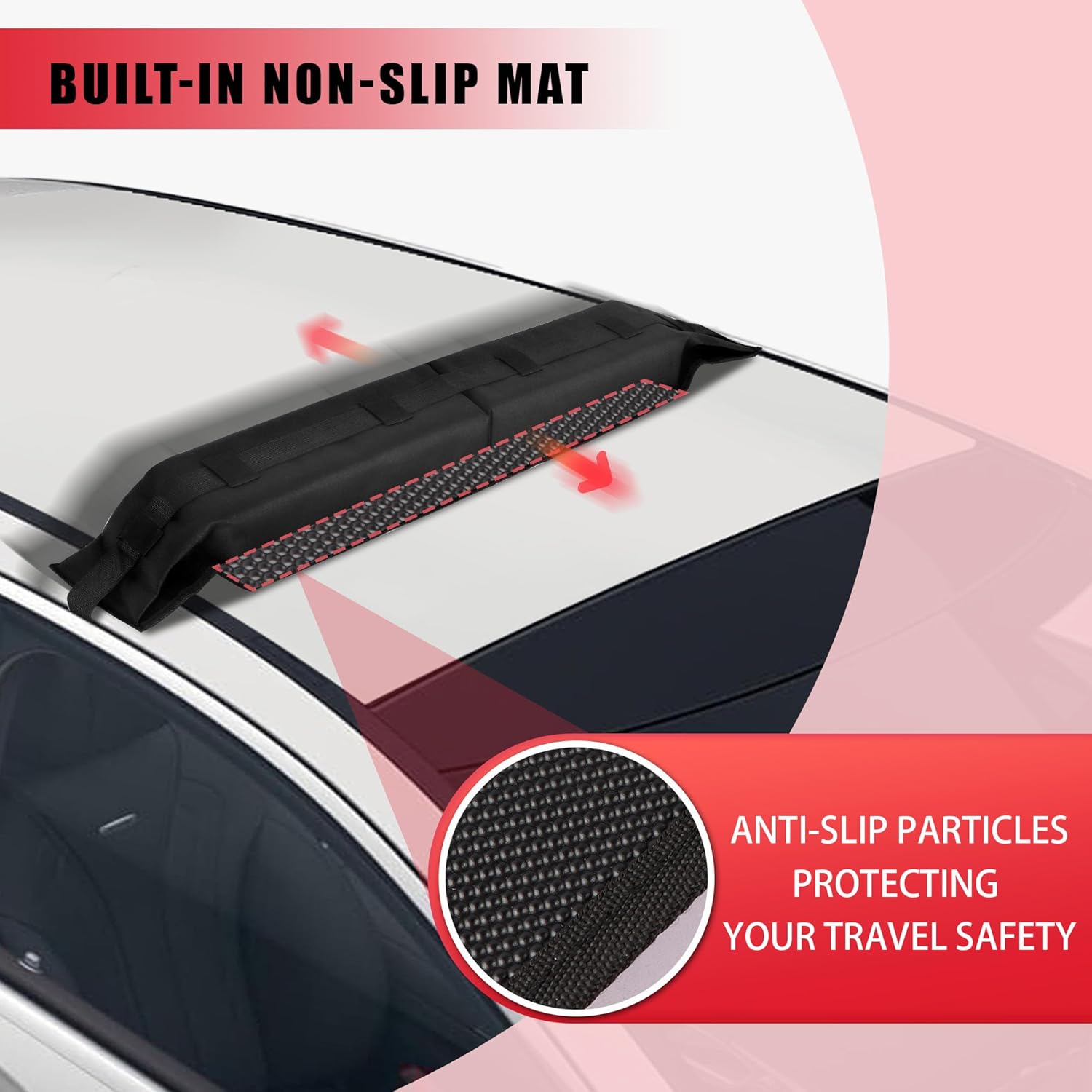 FORWODE Soft Roof Rack Pads, Universal Roof Rack Fit on Cross Bars for Kayak Surfboard SUP Canoe Include 2 Tie Down Straps, 2 Tie Down Rope, 2 Quick Loop Strap and Storage Bag (Black)