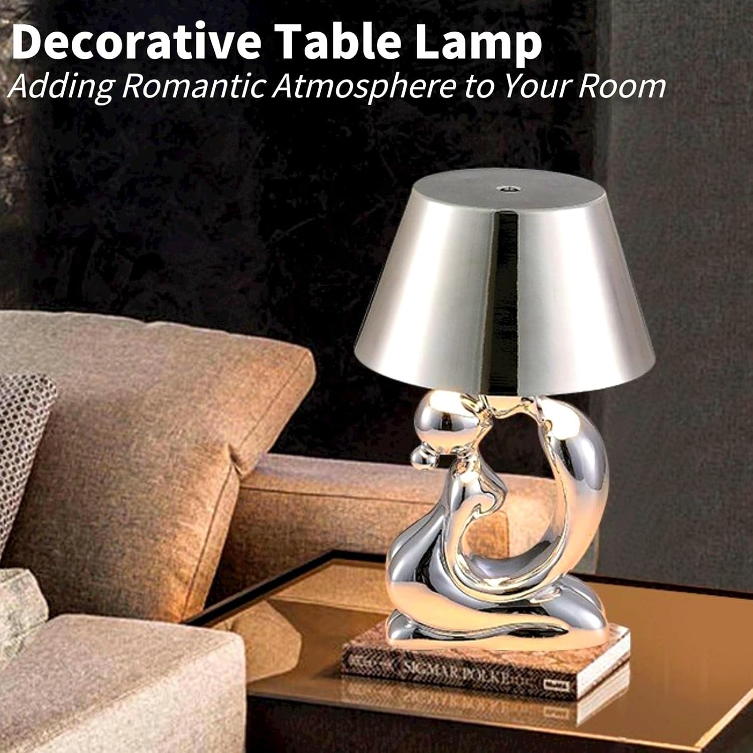 GZKPL Home Decor Lover Statue LED Table LampThe bedside touch control table lamps are fun and creative, which can be a stylish gift for family or friends on birthdays, Valentine's Day, Christmas or other celebrations.This unique home decor emits a concentrated, steady light that creates a warm and comfortable ambience, perfect for use as an accent light, dorm light, or side table light.The lampshade is used to soften the brightness of the light and protect the eyesight. It distributes evenly, relaxing, comfortable and soft light to create a cozy atmosphere in your room. Product Specifications:Material: PVC + ResinBattery Capacity: 2000mAhWorking Hour: Up to 12 hoursCharging Mode: USB ChargingLighting Mode: 3 Level BrightnessControl Method: Touch ControlLight Source: LEDProduction Process: Polishing + Grinding Warm Tips:Place the house decor lamp on a horizontal solid surface and do not overturn it.Please charge continuously for more than 3.5 hours to ensure the best power.Never put the lamp into water or take it with wet hands.This desk lamp is equipped with rechargeable lithium battery and the battery cannot be exposed to heat and sunlight. Package Included1x Table Lamp1x User Manual1x USB Charging cable