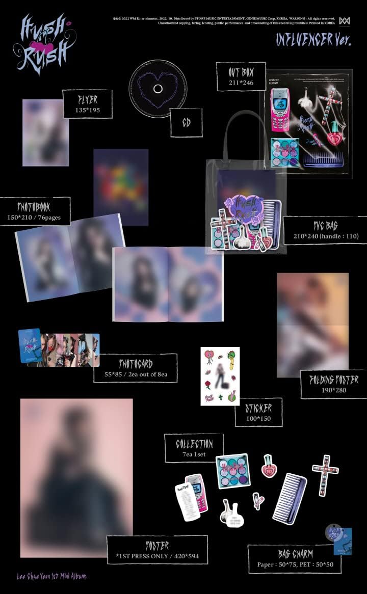 Lee Chae Yeon Hush Rush 1st Mini Album Release Date - 13th October 2022 -Album Contents- CD+1p Folded Poster+1p Folding Poster On Pack+PVC Bag+76p Photo Book +1ea Sticker+Collection(A Verion:7ea, B Version:6ea)+1ea Bag Charm +2p Photo Card+1ea Flyer+Free Tracking Number. Depending on versions , contents inside the album may differ. SET version package will be provided the same quantity of albums&posters. Track List Disk(CD) 1. 01. HUSH RUSH - Title 02. Danny 06. Aquamarine 04. Same But Different ✔Officially distributed Brand New & Original item from Manufacturer. ✔All items from original manufacturers are delivered in original sealed package condition. ✔Your purchase quantity will be count on Korea HANTEO & GAON Chart! ✔All ordered item will be shipped with a tracking number.
