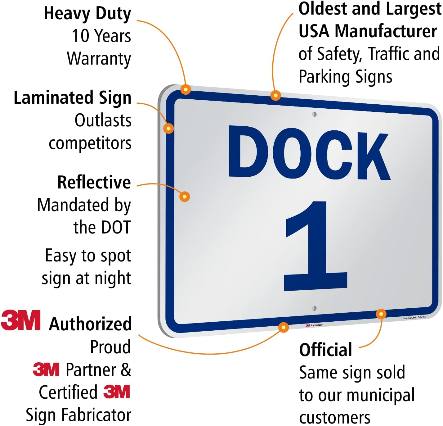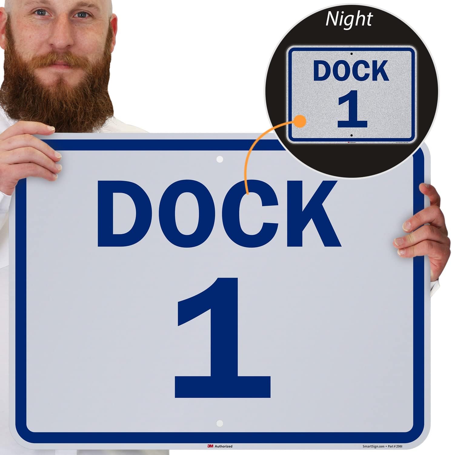 SmartSign 18 x 24 inch “Dock 1” Metal Sign, 80 mil Aluminum, 3M Laminated Engineer Grade Reflective Material, Blue and White