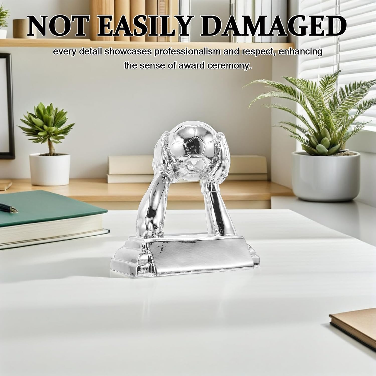 Package List 1 x Soccer Trophy Characteristics -Strong material: made with sturdy resin materials, this soccer trophy is built to last and serves as a timeless keepsake for showcasing memorable achievements -Elegant design: celebrate the goalkeeper glory with a beautifully crafted trophy that symbolizes excellence and inspires team spirit and a sense of belonging soccer goalkeeper -Product Info: Football glove trophy -Ideal size: compact and lightweight, this soccer goalkeeper trophy is easy to carry and display, a nice choice for fans, schools, or team award ceremonies -Size:16.00X13.50X6.00cm/6.29X5.31X2.36in -Material:Resin -Delicate craftsmanship: every detail is meticulously designed to reflect professionalism and respect, enhancing the significance of any award presentation football trophy -Versatile use: perfect for various soccer events, this award is designed to outstanding goalkeepers and motivate players goalkeeper award trophy -Color:SilverGoods Description soccer trophy Perfect for school awards, this trophy serves as a memorable keepsake for fans and players alike, celebrating their achievements on the field.football awards for youth Featuring a glove wrapping a soccer ball, it symbolizes the dedication and hard work of the soccer player.goalkeeper trophy soccer This soccer trophy is designed to the exceptional skills of goalkeepers