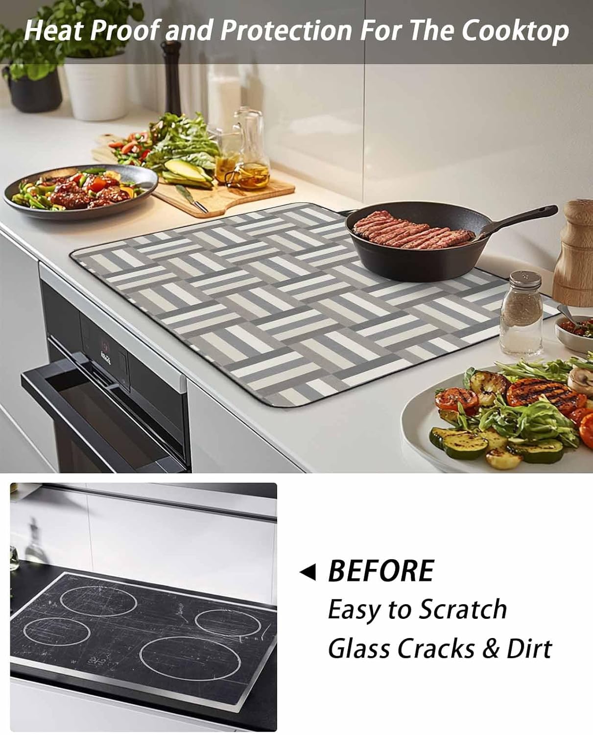 Stove Top Covers combine practicality and beauty, adding more color to your kitchen decorations.Product DescriptionMaterial: 100% Polyester cloth fabric surface with natural rubber backingSize Chart: 28.5x20.5 Inch / 24x21 Inch / 31x24 Inch / 36x21 InchExquisite WorkmanshipThe top is a layer of high-quality 100% Polyester and the bottom is rubber, which is waterproof, non slip, foldable and reusable. Will not move around when you prepare food on it.Counter Top ProtectorProtects electric, glass, or ceramic stovetop from scratches, scrapes, glass cracks, dirt & spills.Versatile UsesThe mat can be used as a stove top cover, counter top mat, ironing mat, washer top cover, coffee mat, flat top oven cover, dryer top cover, oven cover, refrigerator top cover, extra large rubber mat.Extra Counter SpaceThis stovetop cover is a one-stop solution for your many uses. It provides more worktop space for anything from food preparation to ironing. Therefore, this cooktop cover mat is perfect for kitchens with limited space.Ideal GiftThe exquisite pattern design makes the stove cover a perfect gift given to family friends and lovers. It adds color to your kitchen docor.Foldable and Easy StorageOur stove cover can be folded or rolled up and put away in your cabinet or cupboard when not in use.Special NoteNote: The mat may have creases from folding during shipping. This will smooth out in a couple of days.The colors may have slight differences due to different screens.