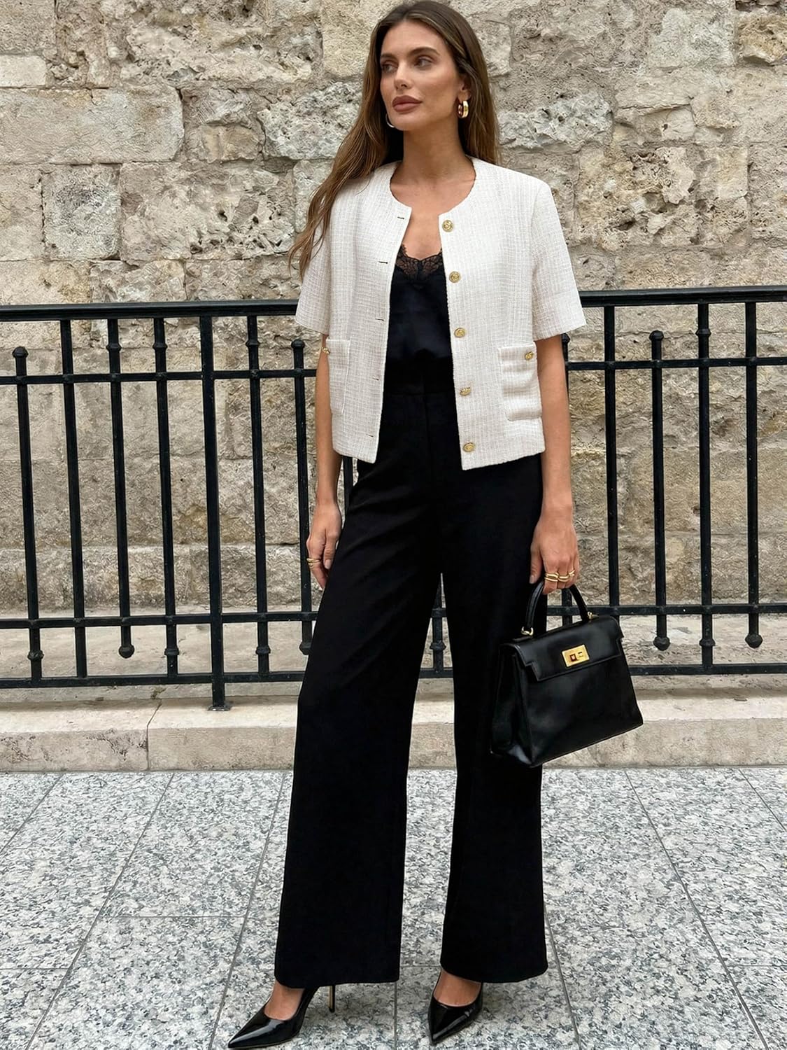 | Style Name | Business Casual Short Sleeve Tweed Cropped Blazer |