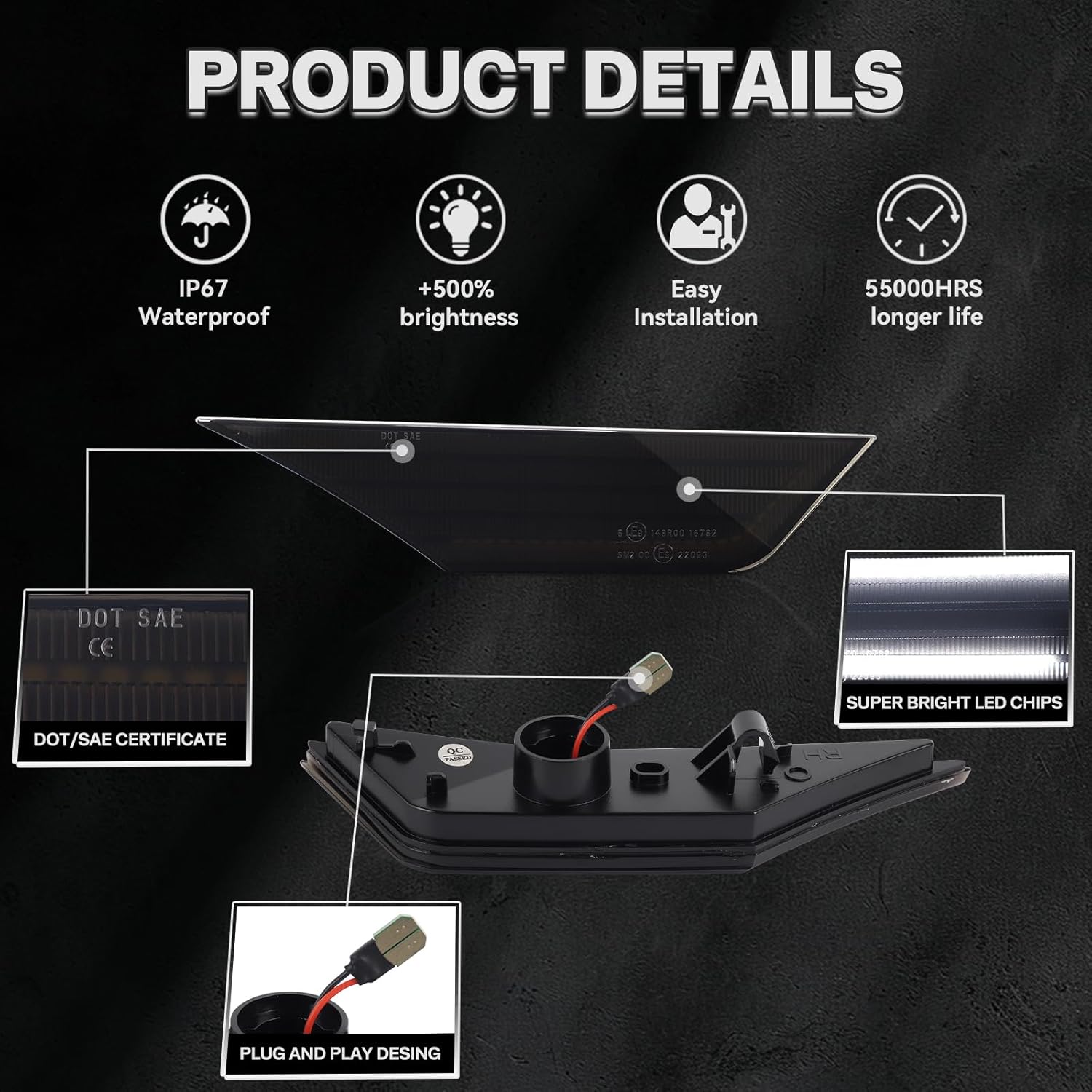 | Included Components | 2 x White LED Honda Civic Front Side Marker Lights |