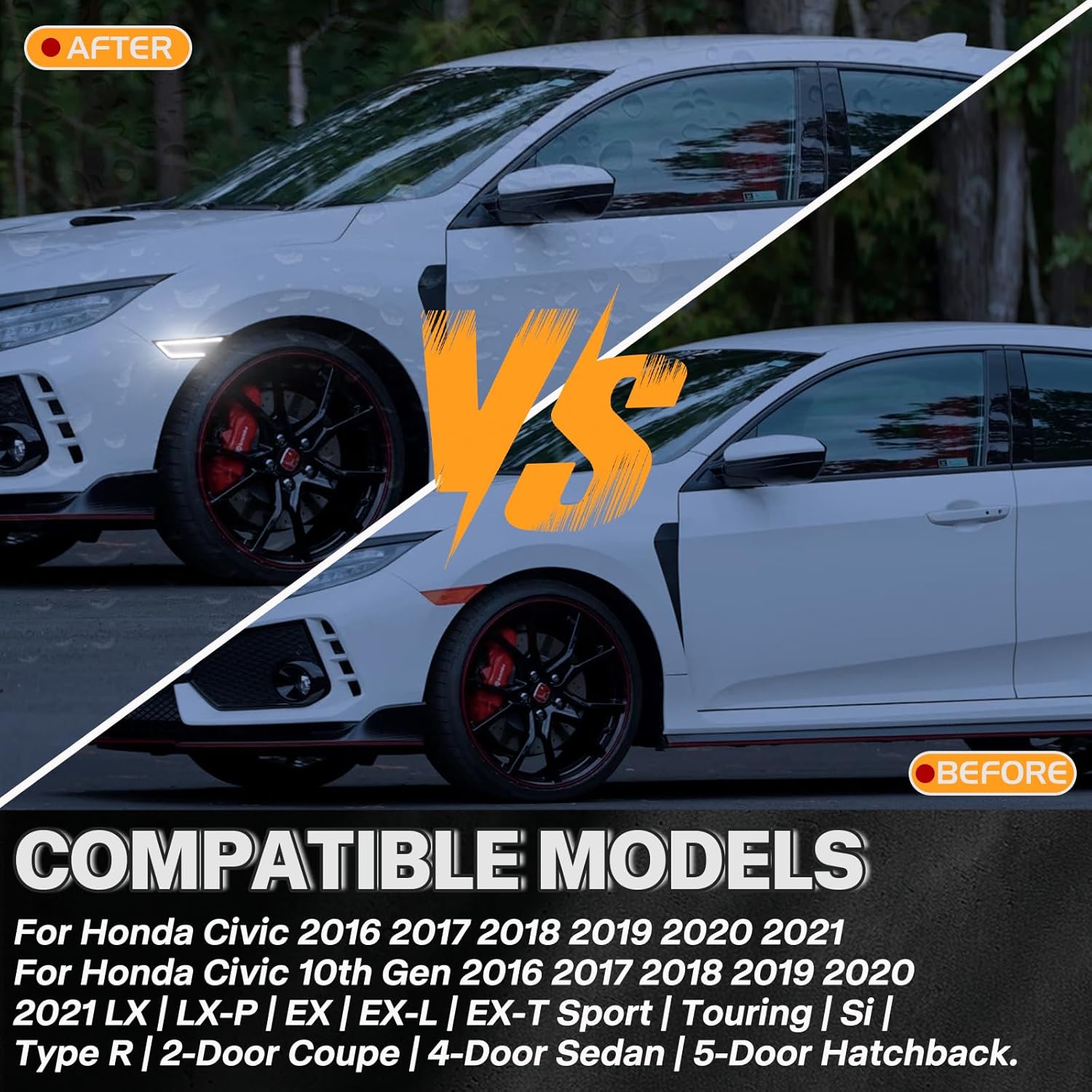 | Compatible with Vehicle Type | For Honda Civic 10th Gen 2016-2021, For Honda Civic Sport,Touring,2-Door Coupe,Si,Type R,4-Door Sedan & 5-Door Hatchback 2016 2017 2018 2019 2020 2021 |